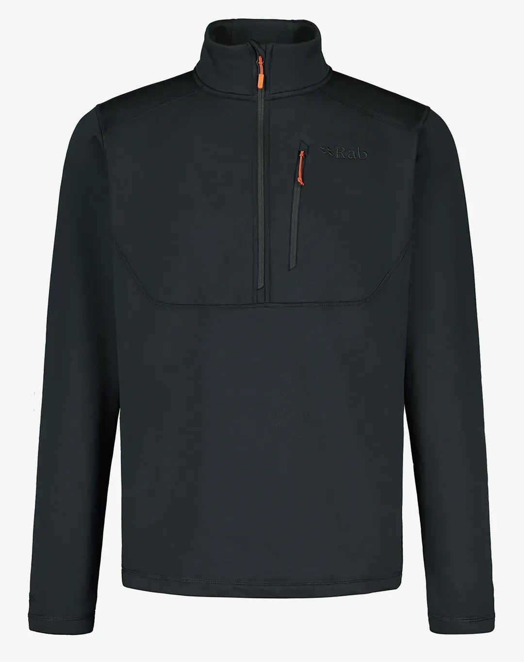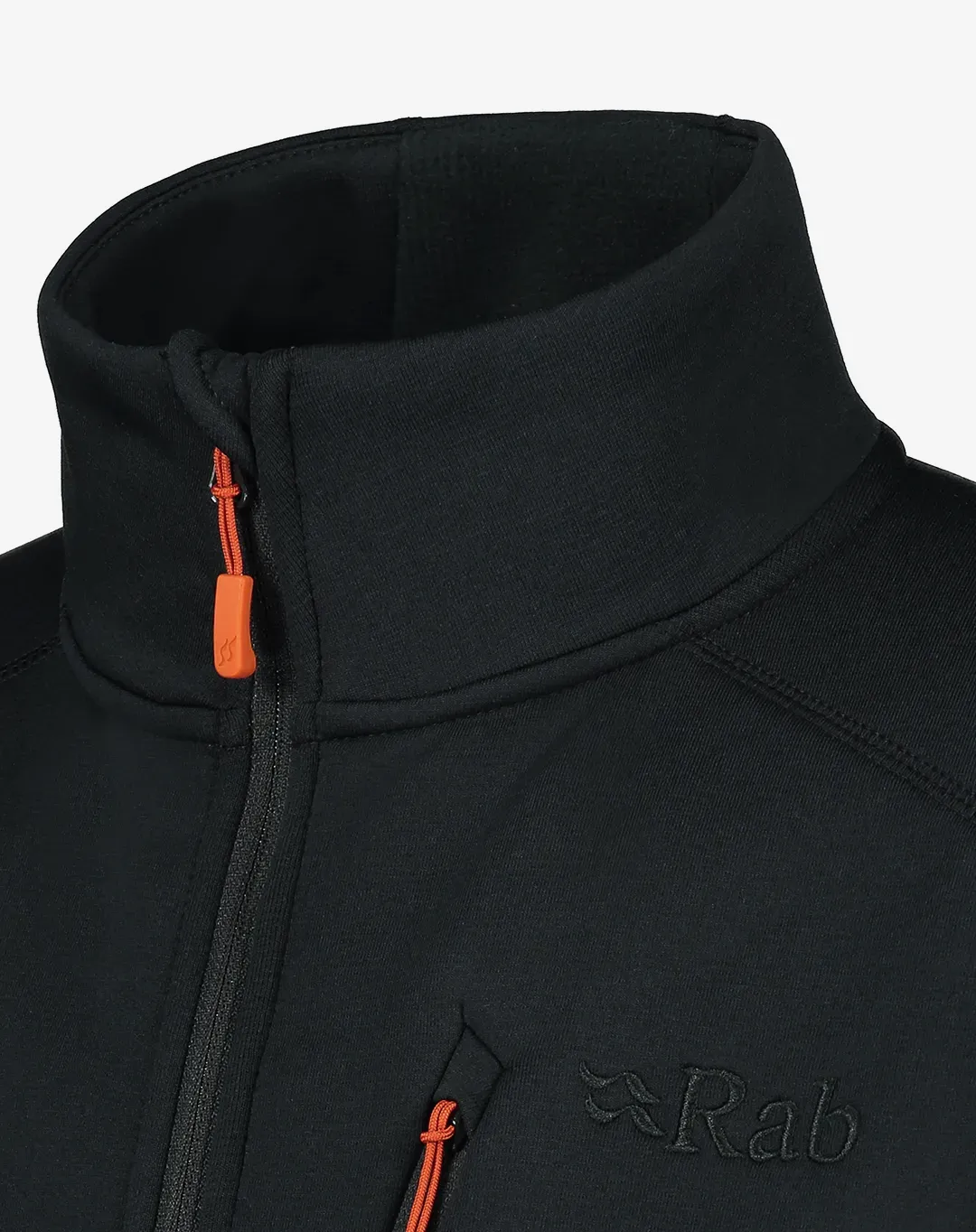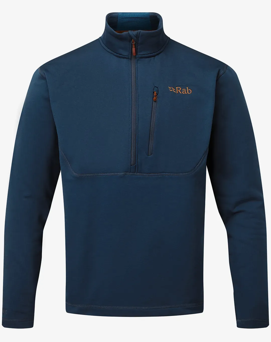 סווטשירט מחמם, נושם ומבודד מבית Rab העשוי פליז אלסטי בשילוב תפרים שטוחים לנוחות מירבית עם עוד שכבות מלמעלה ורוכסני YKK איכותיים