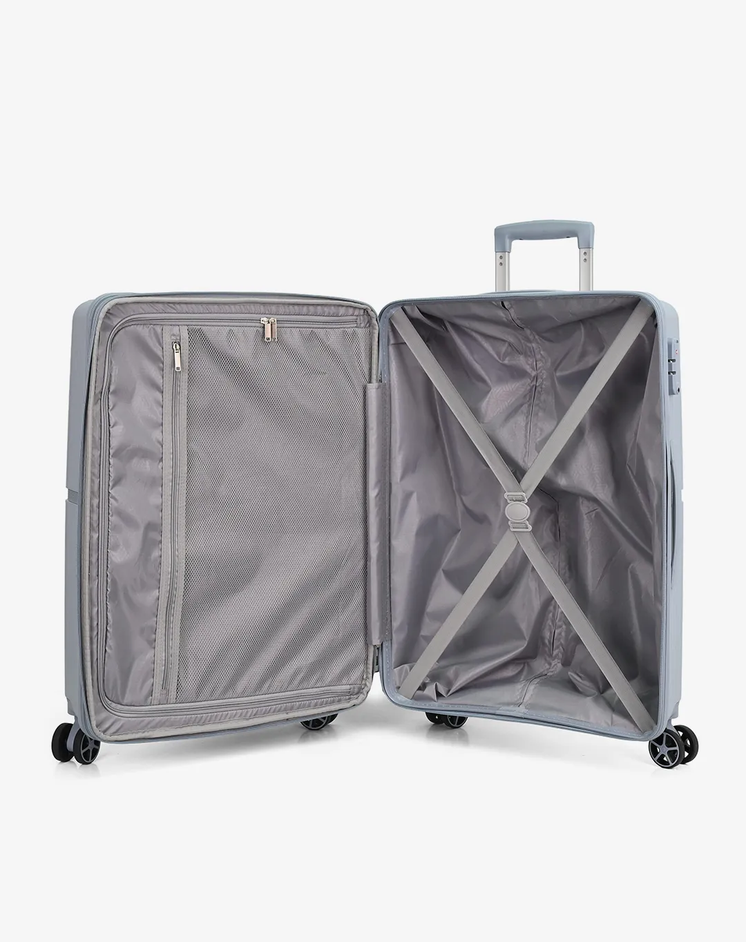 סט מזוודות AEROSHELL עשויות פוליפרופילן עמיד וחזק, 4 גלגלים ואפשרות הרחבה
