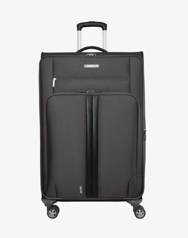 סט מזוודות ASTRO בעיצוב עדכני מבית "Marco Polo" עם מנגנון טרולי פנימי קל במיוחד וידית טלסקופית כפולה בעלת אחיזה ארגונומית נוחה. למזוודות תא ראשי הכולל רצועות הידוק ותא פנימי מרשת, תא אחסון חיצוני וארבעה גלגלים המסתובבים ב-360 מעלות