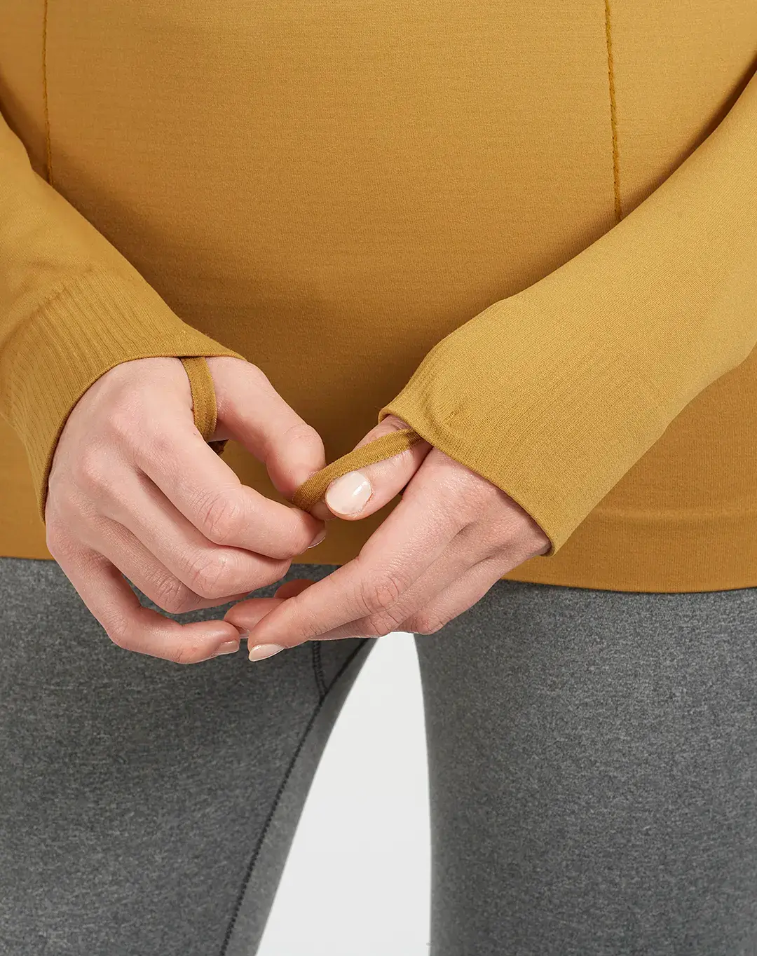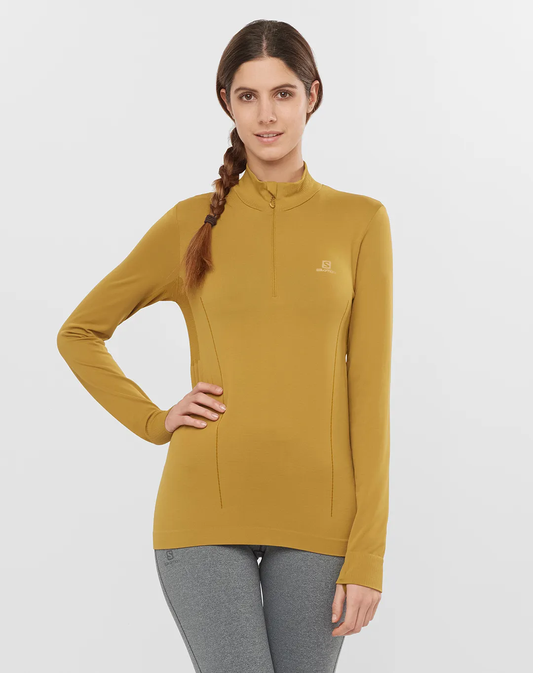 עם גזרה אקטיבית ובדים רכים, שכבת הביניים COMET SEAMLESS HALF-ZIP לנשים ממזערת חיכוך וממקסמת נוחות