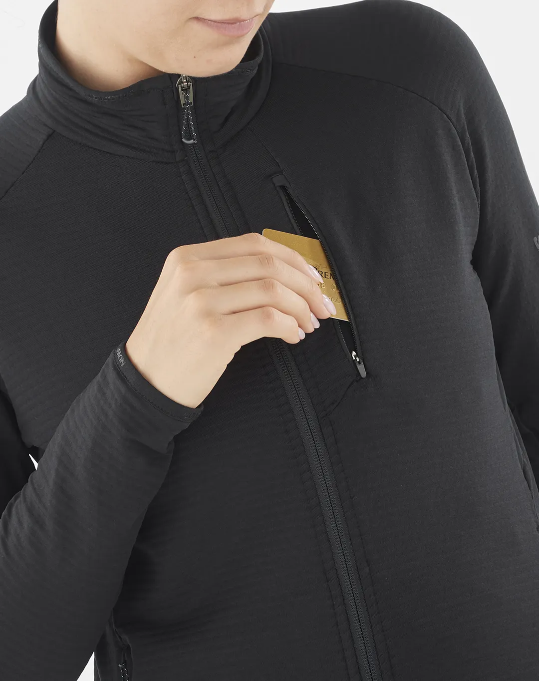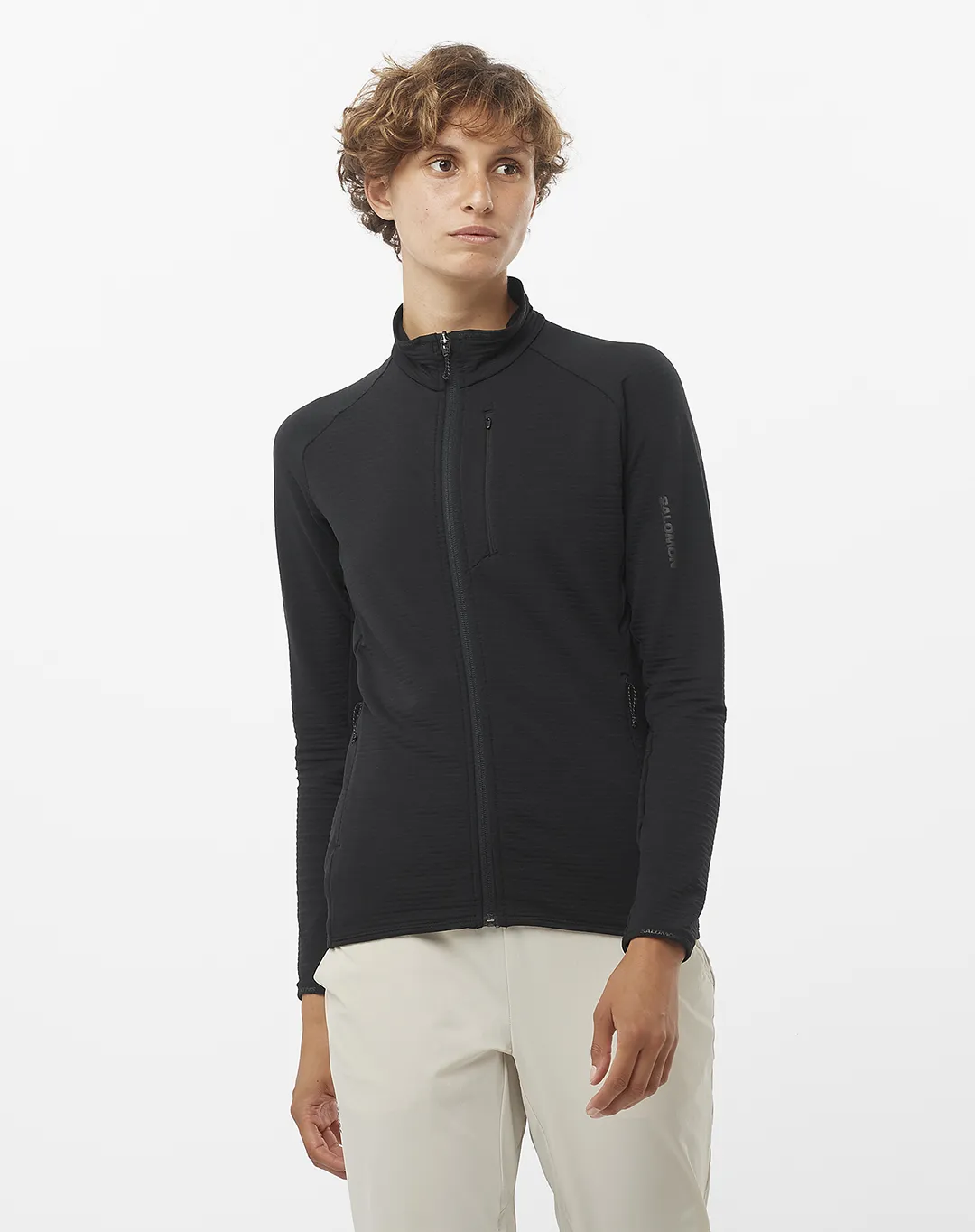 עליונית הנשים Salomon Essential Lightwarm עם רוכסן מלא היא שכבת ביניים נהדרת המתאימה לכל פעילויות החורף, מהליכה ועד סקי