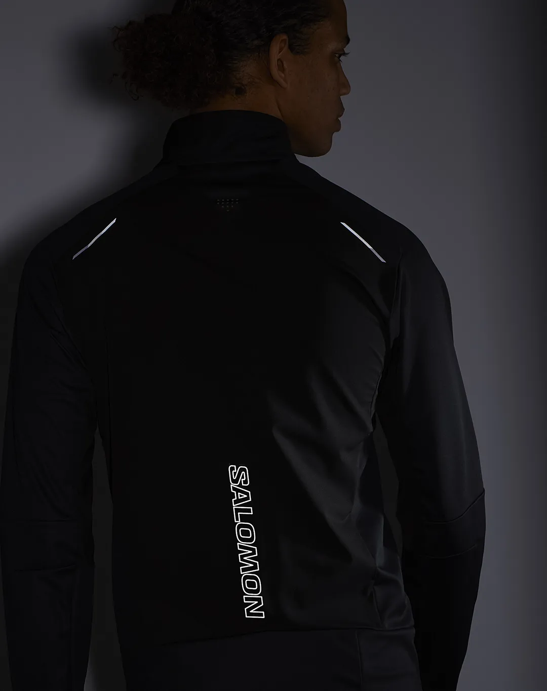 מעיל הטכני Gore-Tex Pro Ws Jacket Deep Black לגברים מבית Salomon הוא דגם בעל ביצועים גבוהים המיועד לפעילויות חוץ כמו סקי נורדי או ריצת שטח