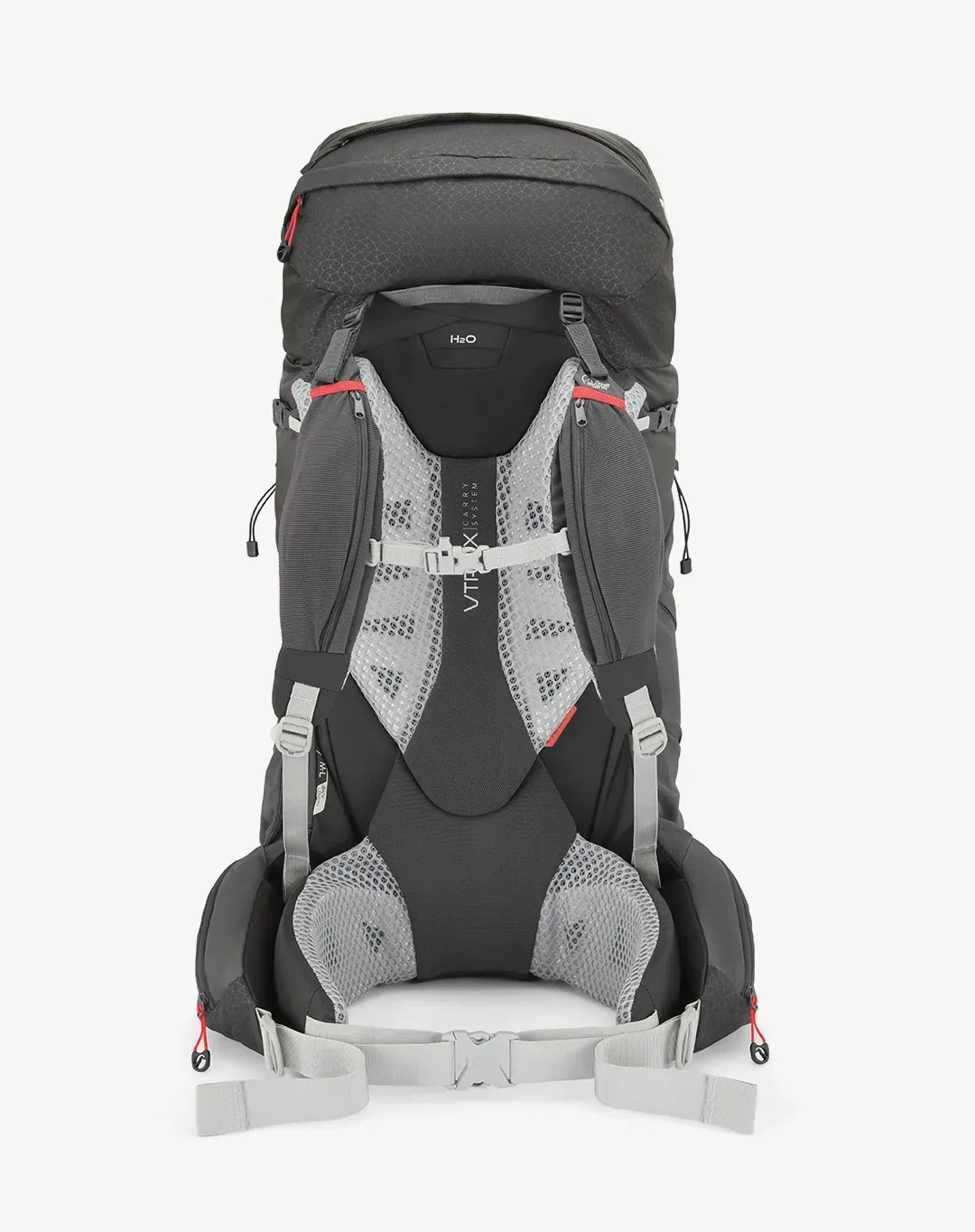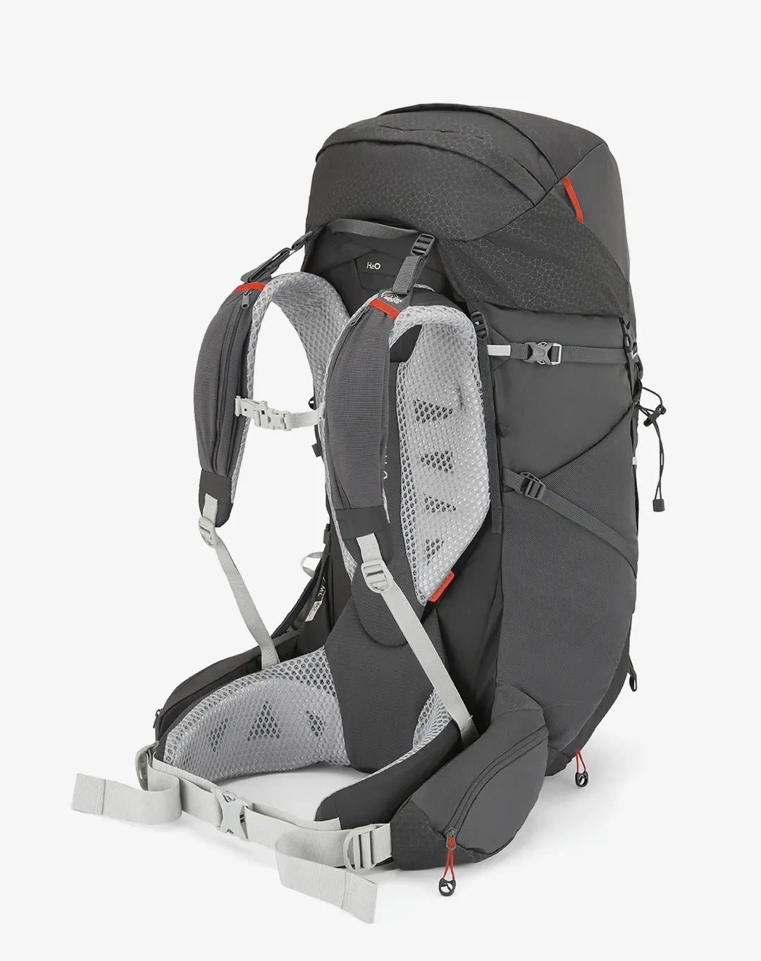 לתרמיל נפח של 65 ליטר, מערכת גב מרופדת ומאווררת, בד דוחה מים ומלא תאים וכיסים לאחסון נוח